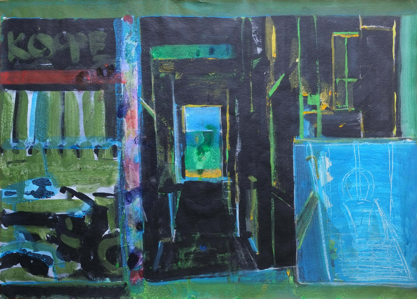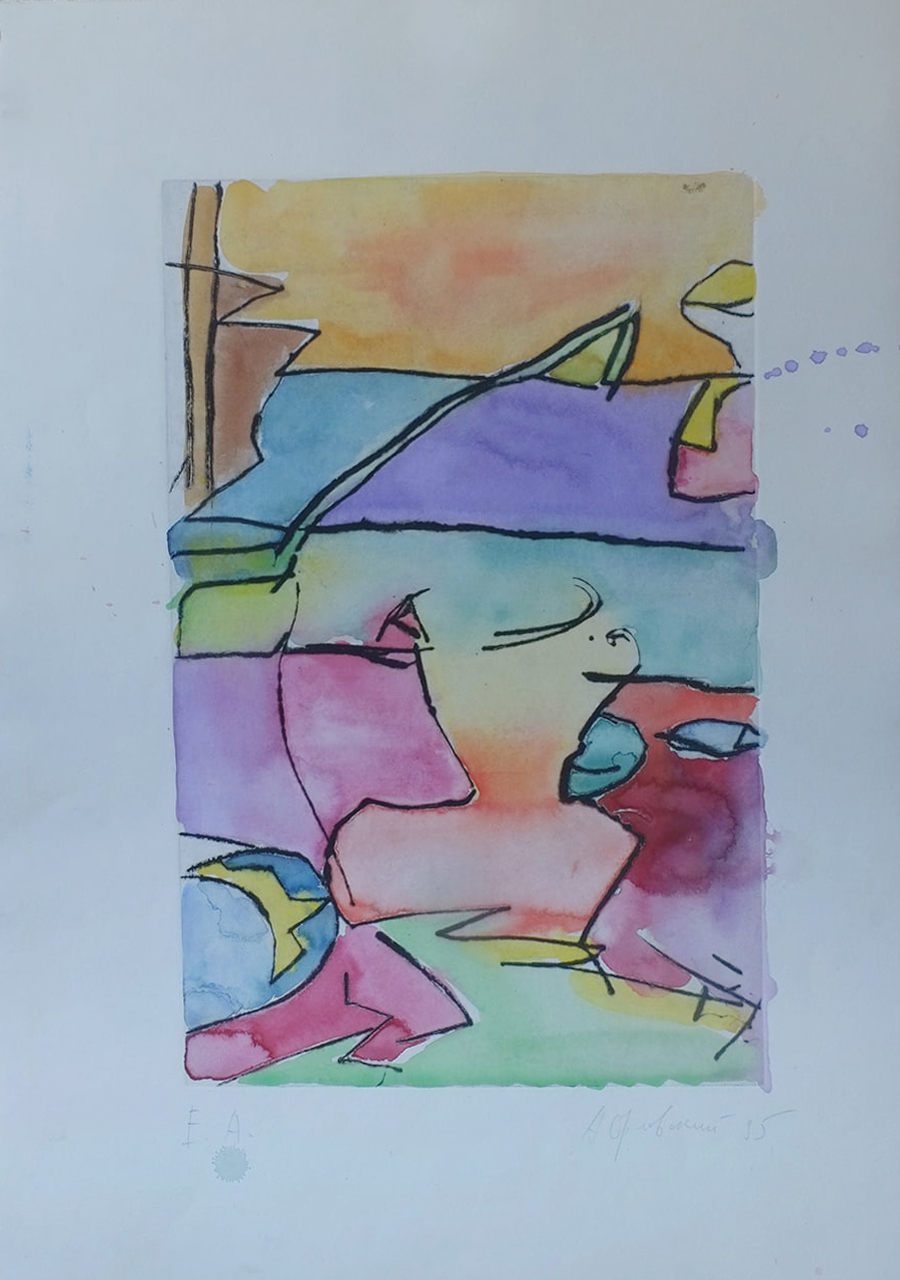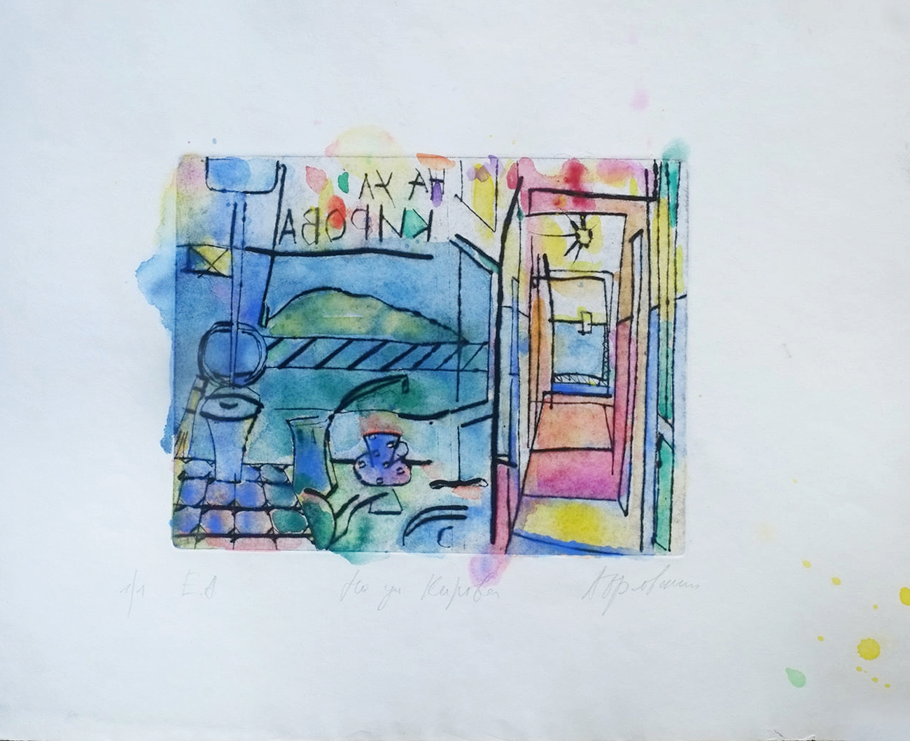 Гравюры 1995 г. Натюрморт. Точнее, фрагмент натюрморта. Приехав с утра к родителям на ул. Кирова (где у меня была мастерская), я зашел в комнату и увидел на столе: турку (джезва), чашку на блюдце, на доске хлеб, чайную ложку, нож, сахарницу, масло в масленке, скорлупу от яйца... Это был обычный мамин завтрак, а её и след простыл... убежала на работу.
