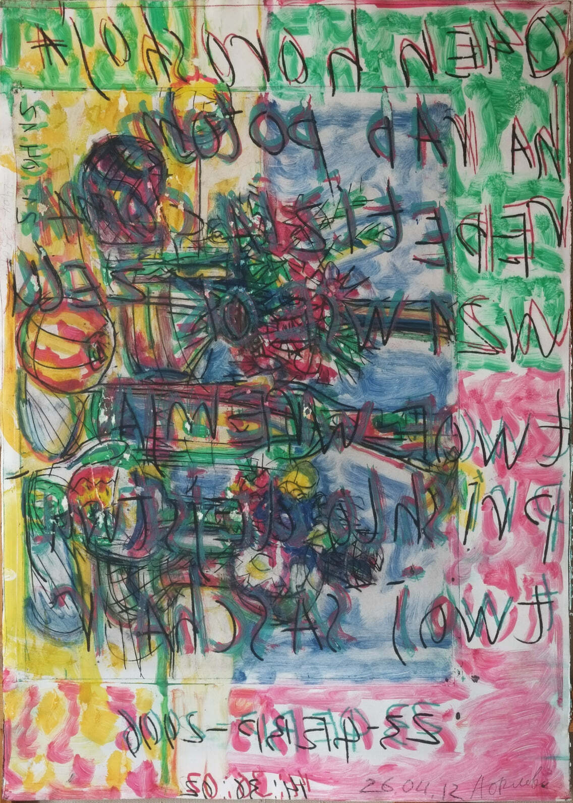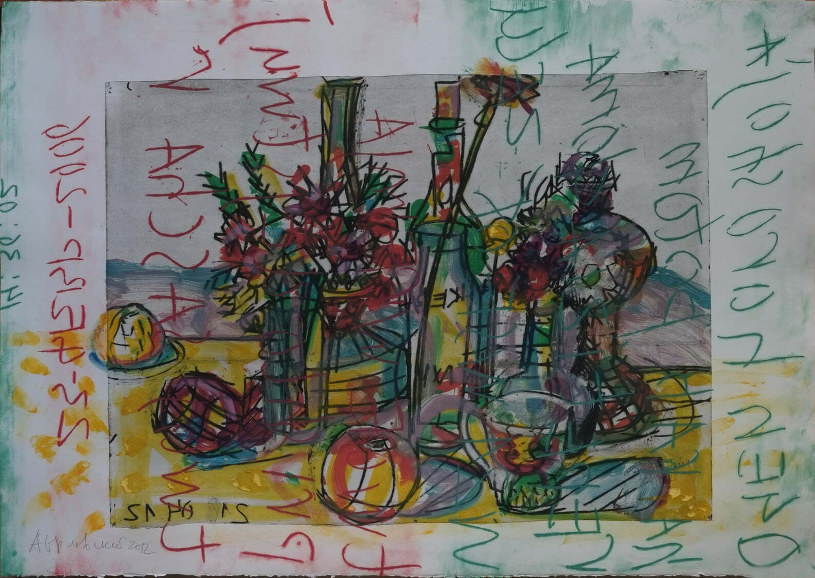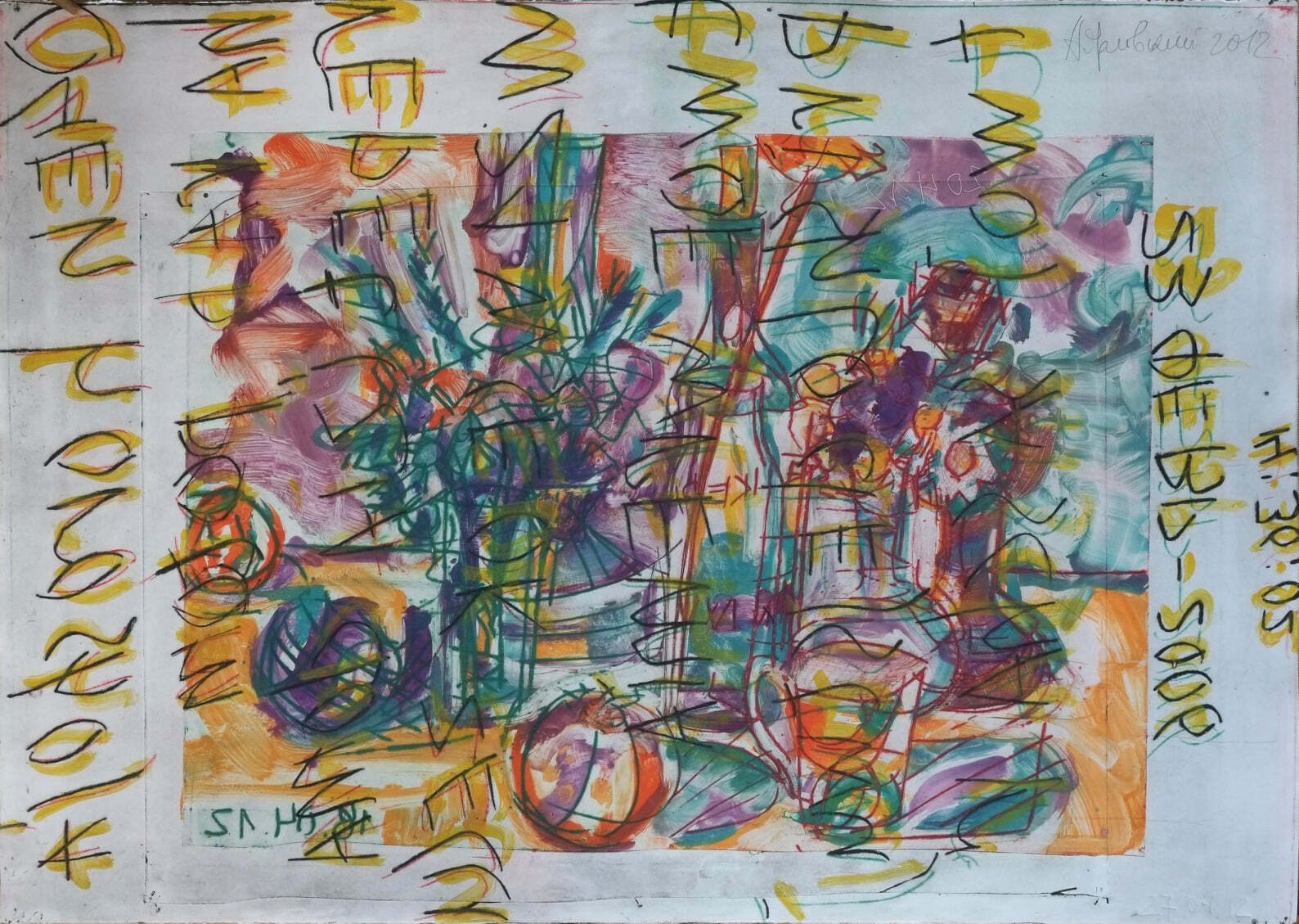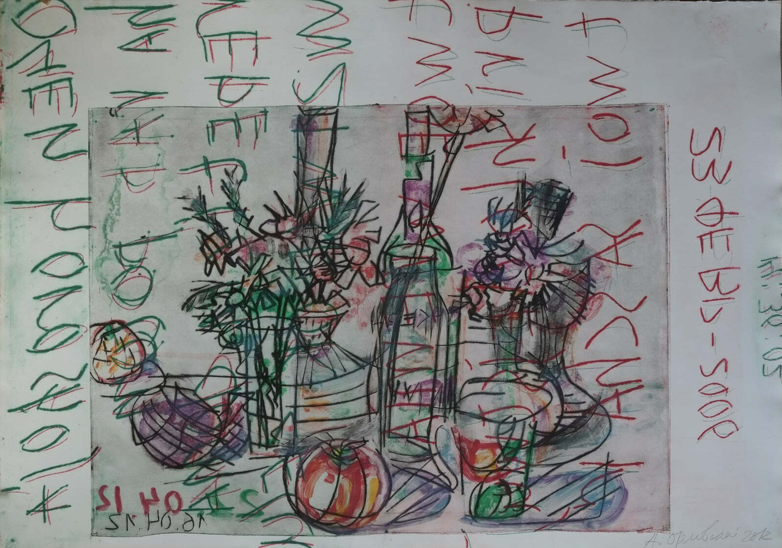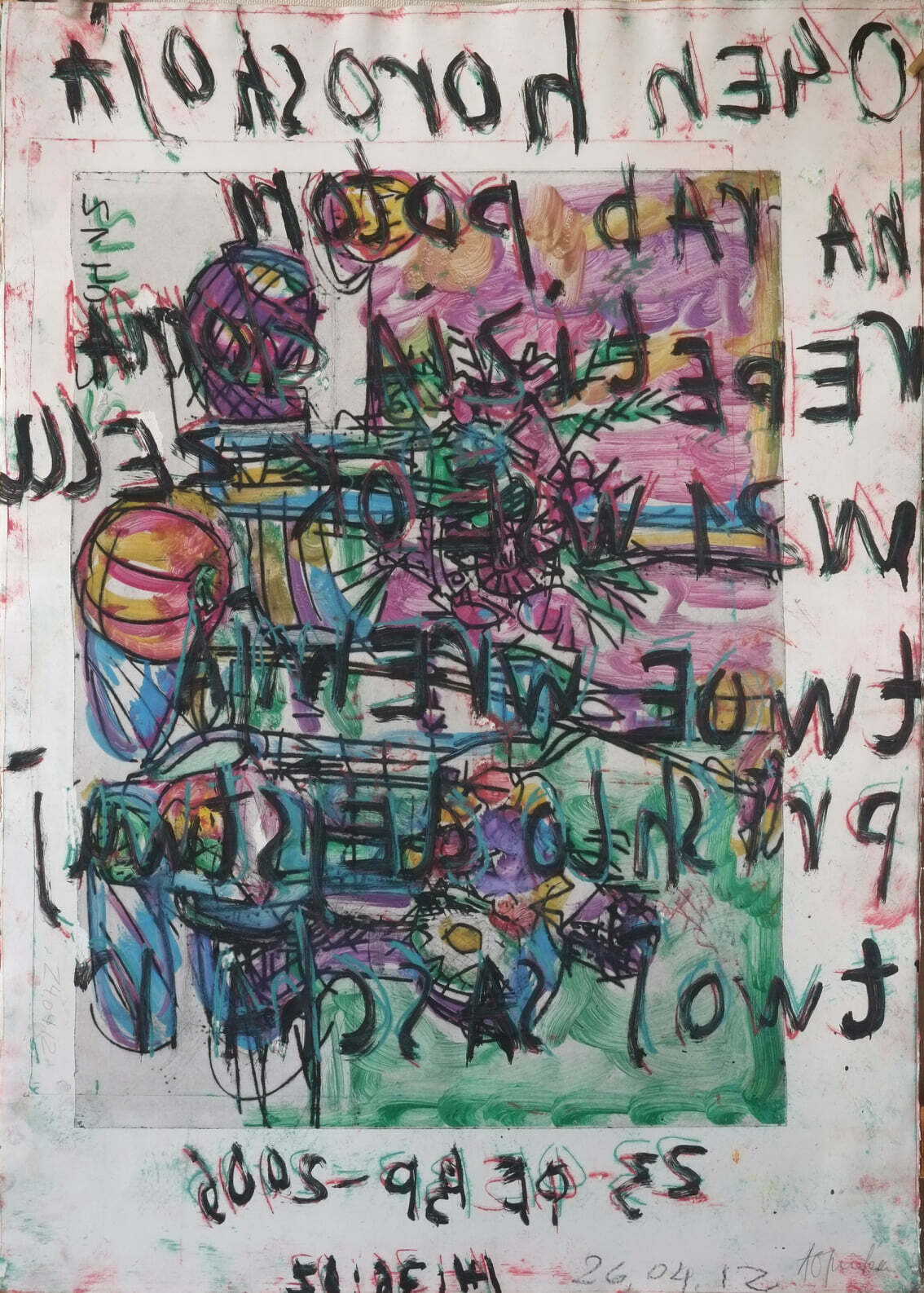 Получив в 2006 году на 23 февраля СМС от Саши Ридера, я на следующий год стал делать серию Почта СМС, которая продолжалась до 2011 года. Рождение серии, случилось в 2012 году, когда я своим ученикам поставил натюрморт на фоне этой доски, оставшейся от печати.