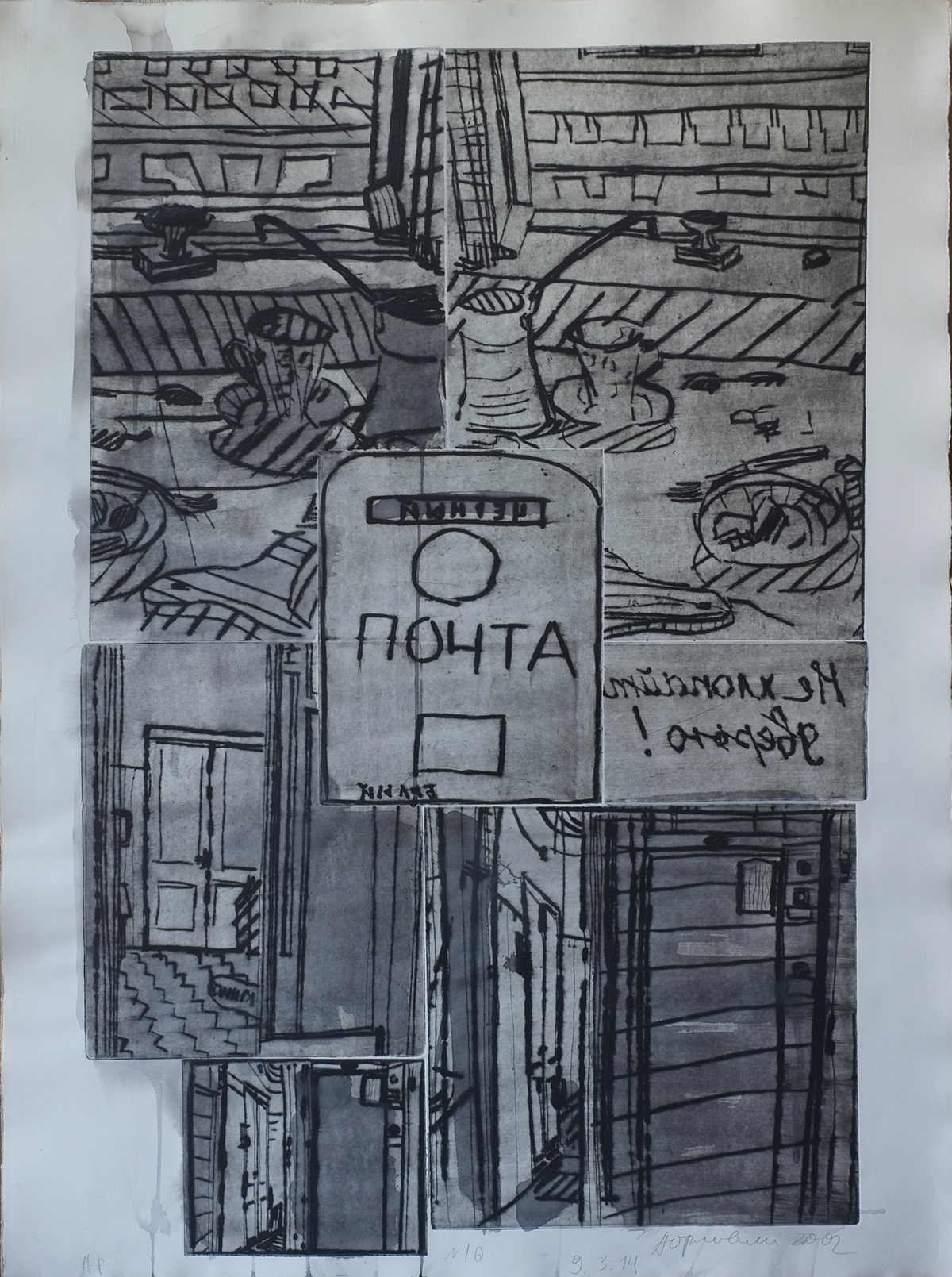 Эта черно-белая серия первоначально была сделана в 2002 году с почтовыми ящиками с использованием моего фотоматериала про квартиру и про Крым (фотографии 86-87 гг).