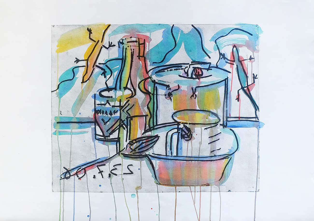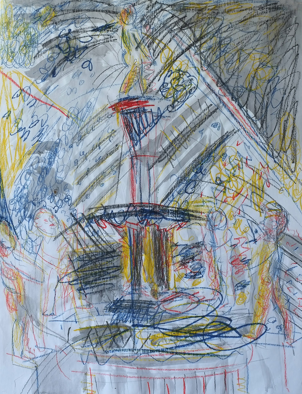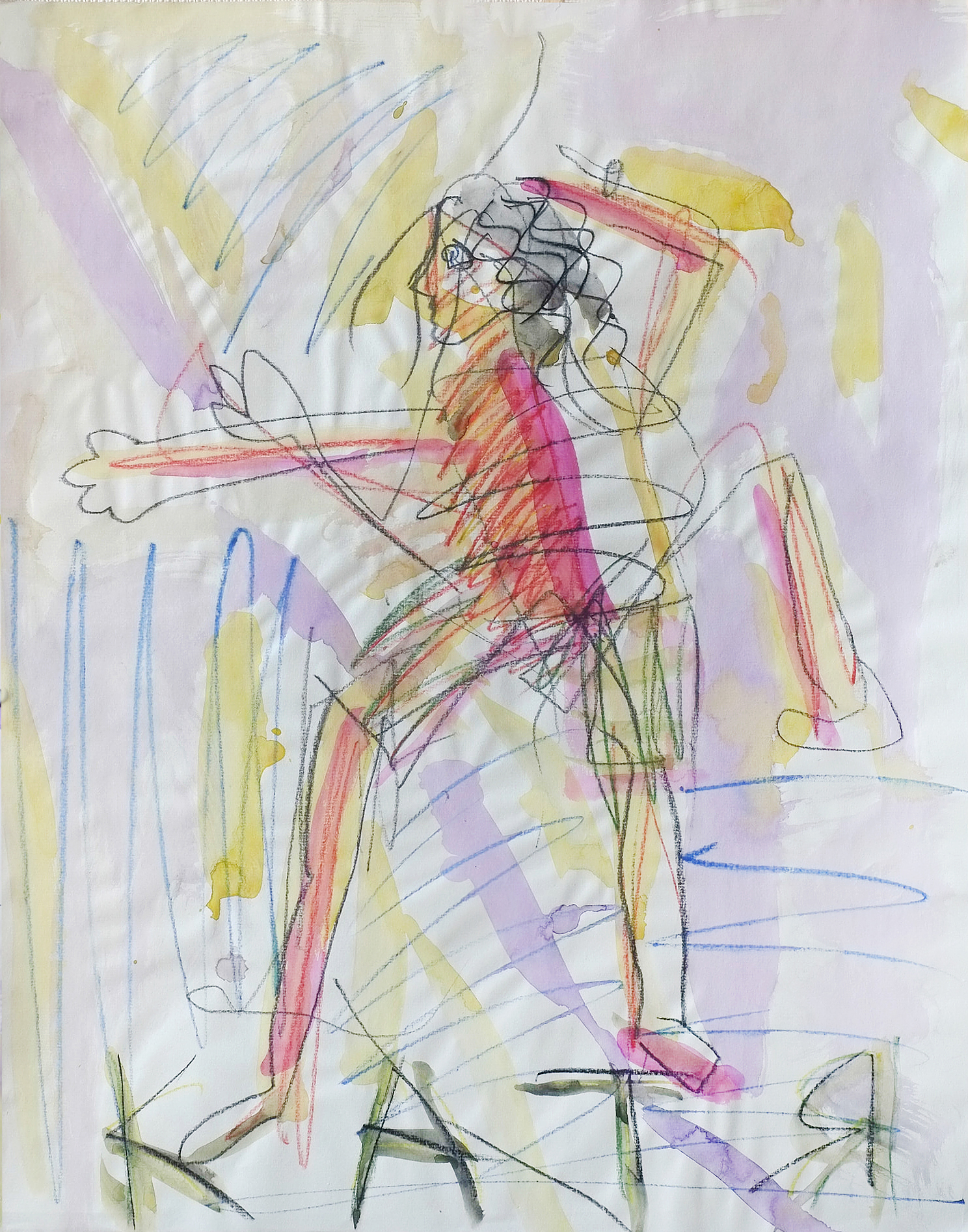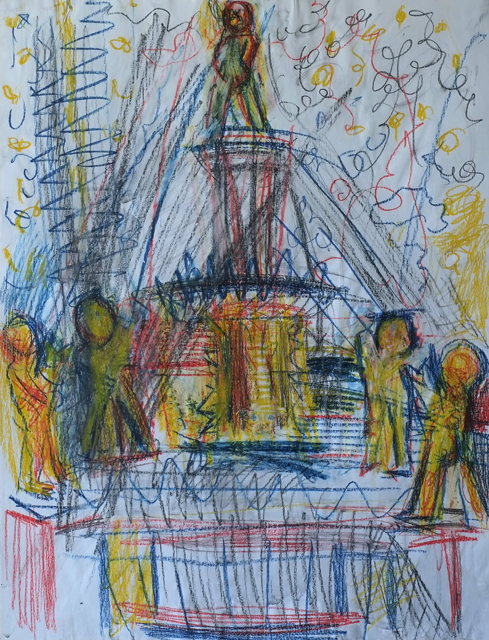 2007. Июль. Выдался довольно жарким. На краю лагеря была площадка, как бы смотровая, которая находилась на камне Мудрости. Вечерами там звучали песни под гитару, когда приезжал Андрей Дмитриевич, по моему, это как раз случилось в 2007 г. На этой площадке, когда было жарко, ребята стелили спальники и ночевали под небом, усеянным звездами. С видом на море, на котором появлялась лунная дорожка. А с противоположной стороны была гора. Днем я работал рядом с площадкой с видом на гору Парус. Стояла моя тренога, куча бумаги и пару фляг с водой, которые я наливал в 2-х минутах ходьбы, на роднике. Когда было очень жарко, я обливал себя с головой чтобы не закипеть от дневного солнца и работы. Акварель быстро сохла и можно было накладывать цвет, чередуя с карандашом. В те жаркие дни, ребята разбредались по холмам, а вечером приходили на море. На следующий год было уже не так жарко, а наоборот сыро, туман, солнце. Было интересно наблюдать с моего поста гору Парус.