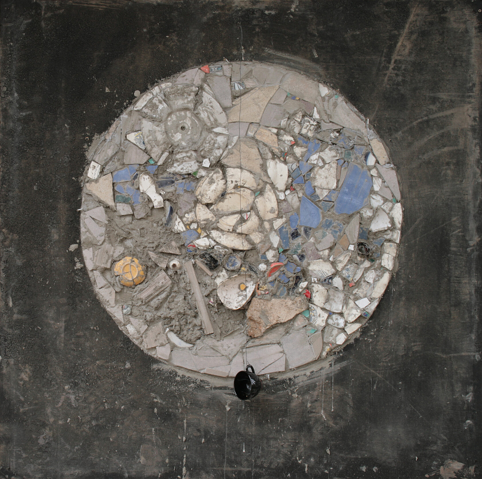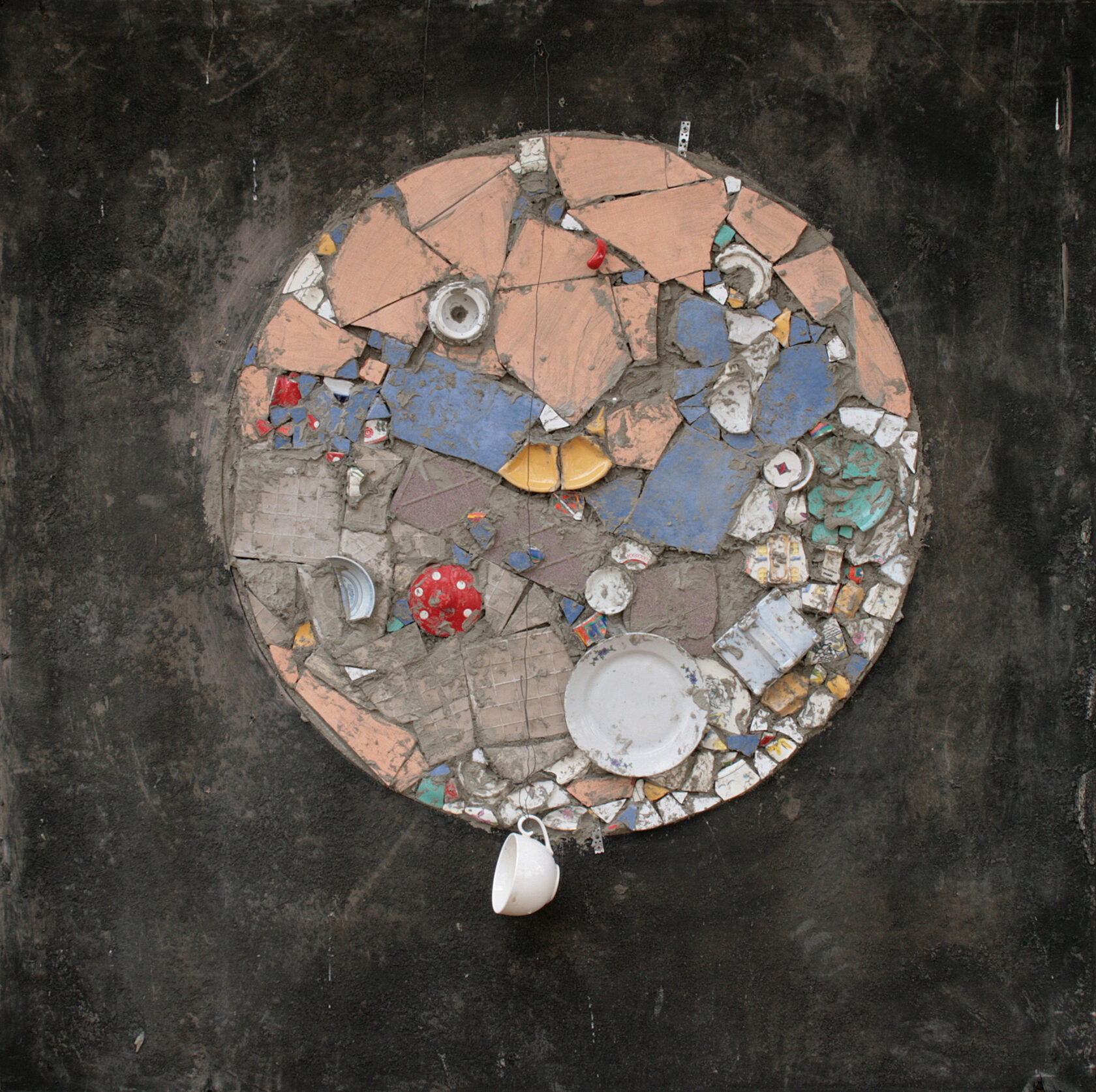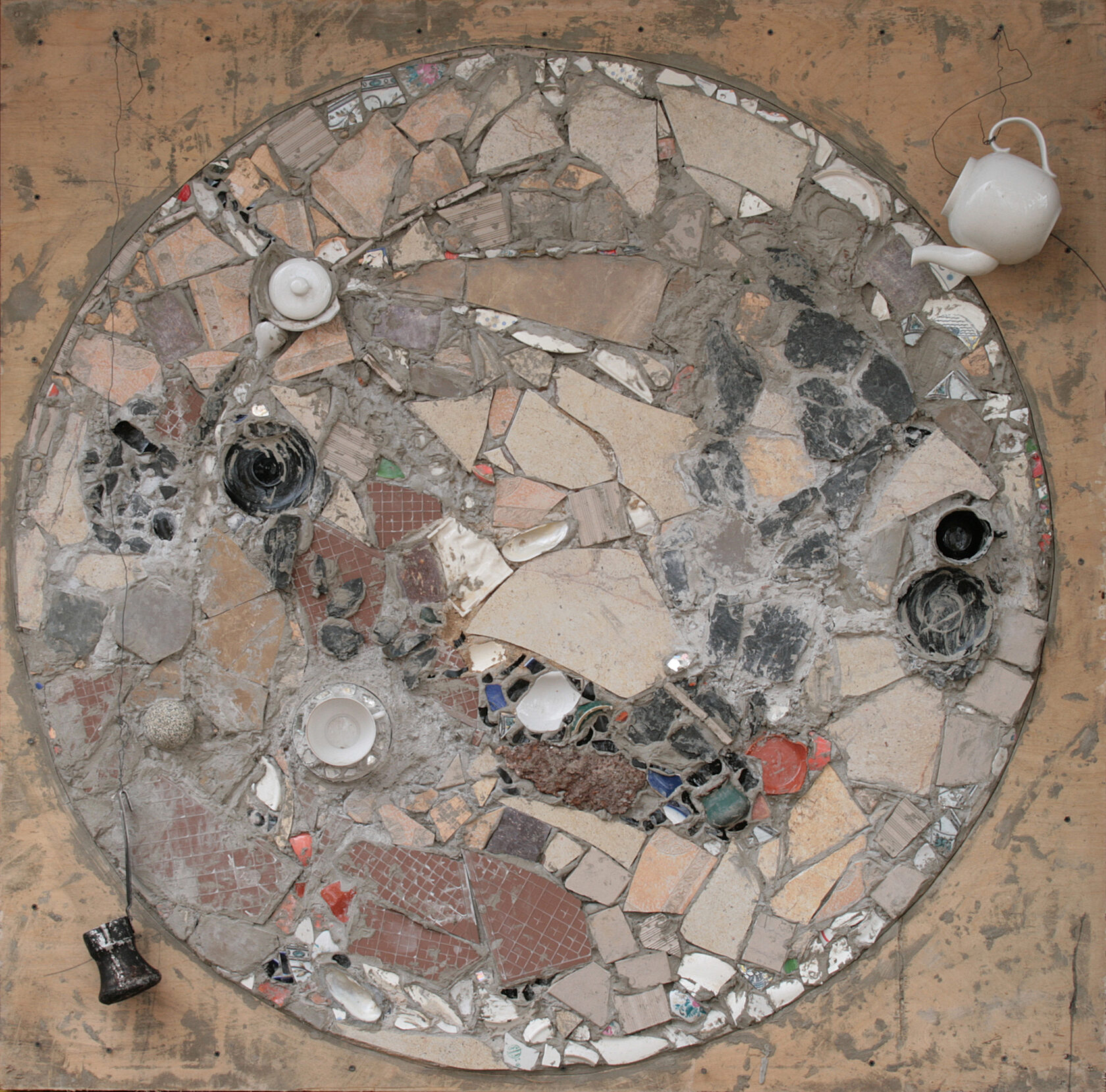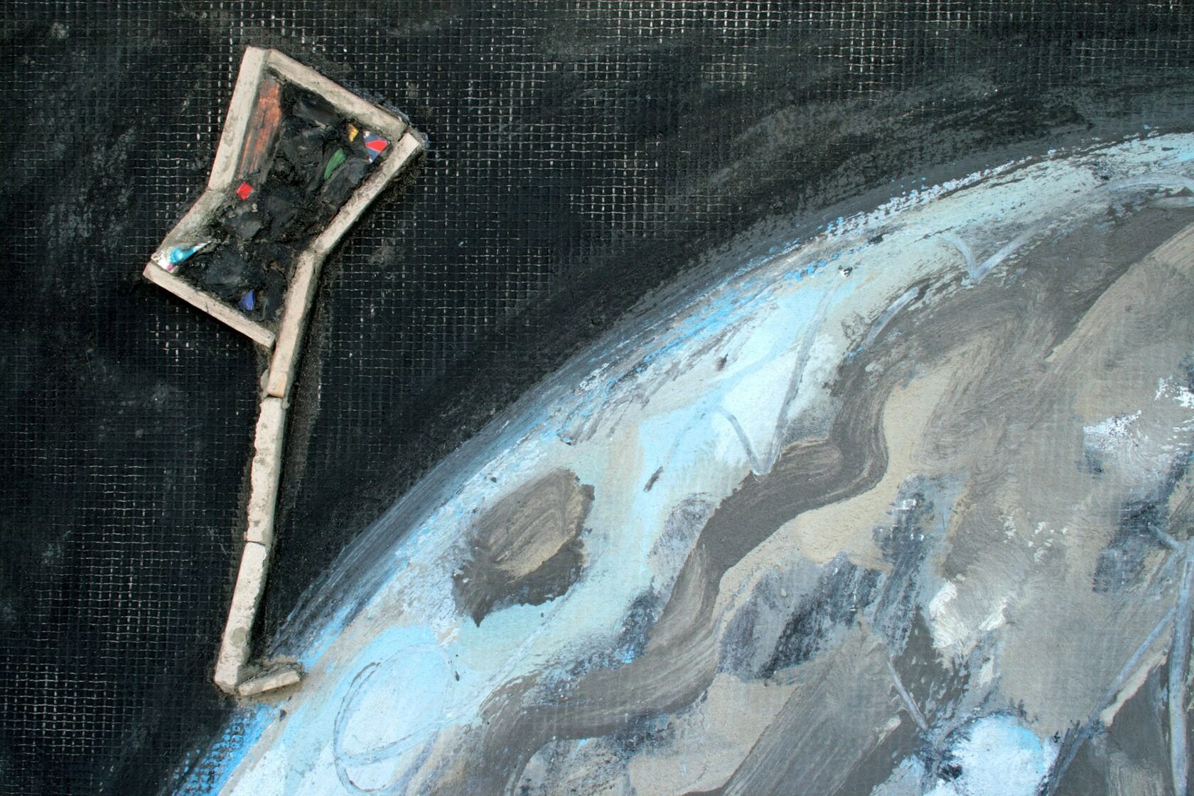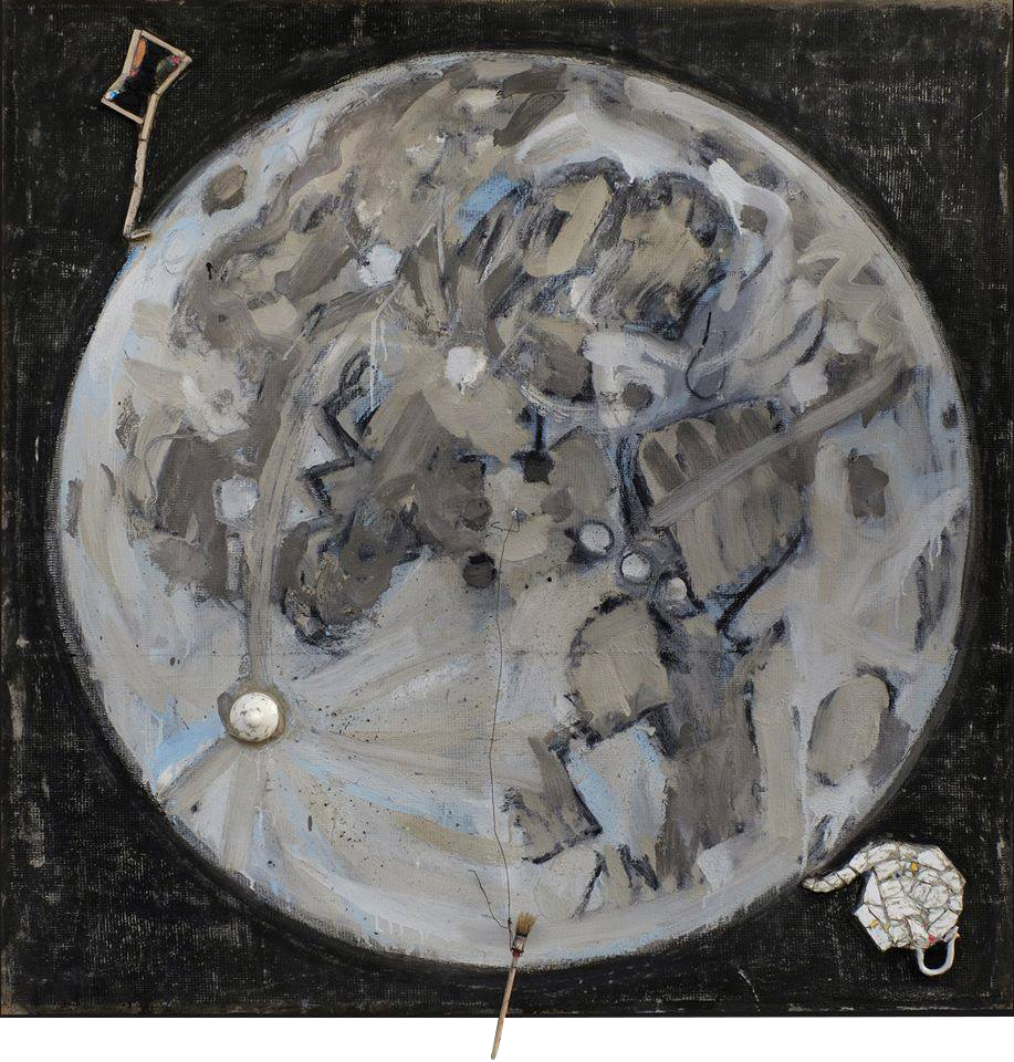 Моя тема ЧАЙКОФЕ, получила продолжение в полнолуние. При создании первой большой вещи (фанера 153х153 см), я сделал минимальное поле и оно осталось нетронутым. Я частенько поглядывал на фото моей Луны. Мне хотелось быть ближе по рисунку к оригиналу и отталкиваться в своих пластических жестах от этого. Потом захотелось показать фрагмент неба и т. д.