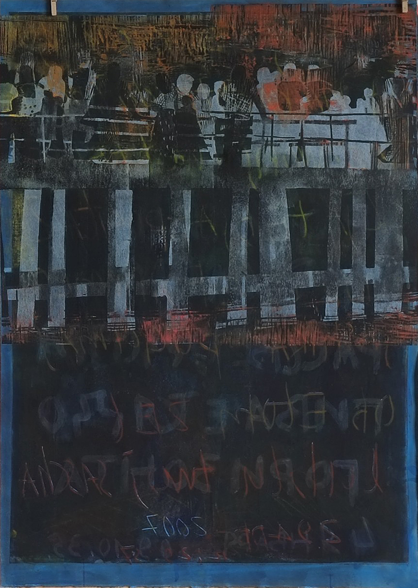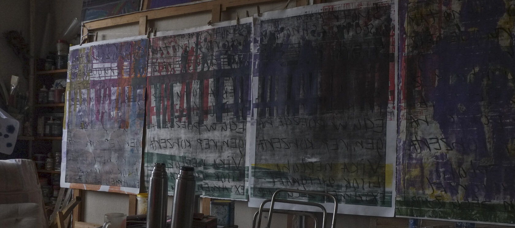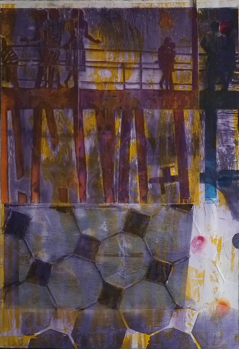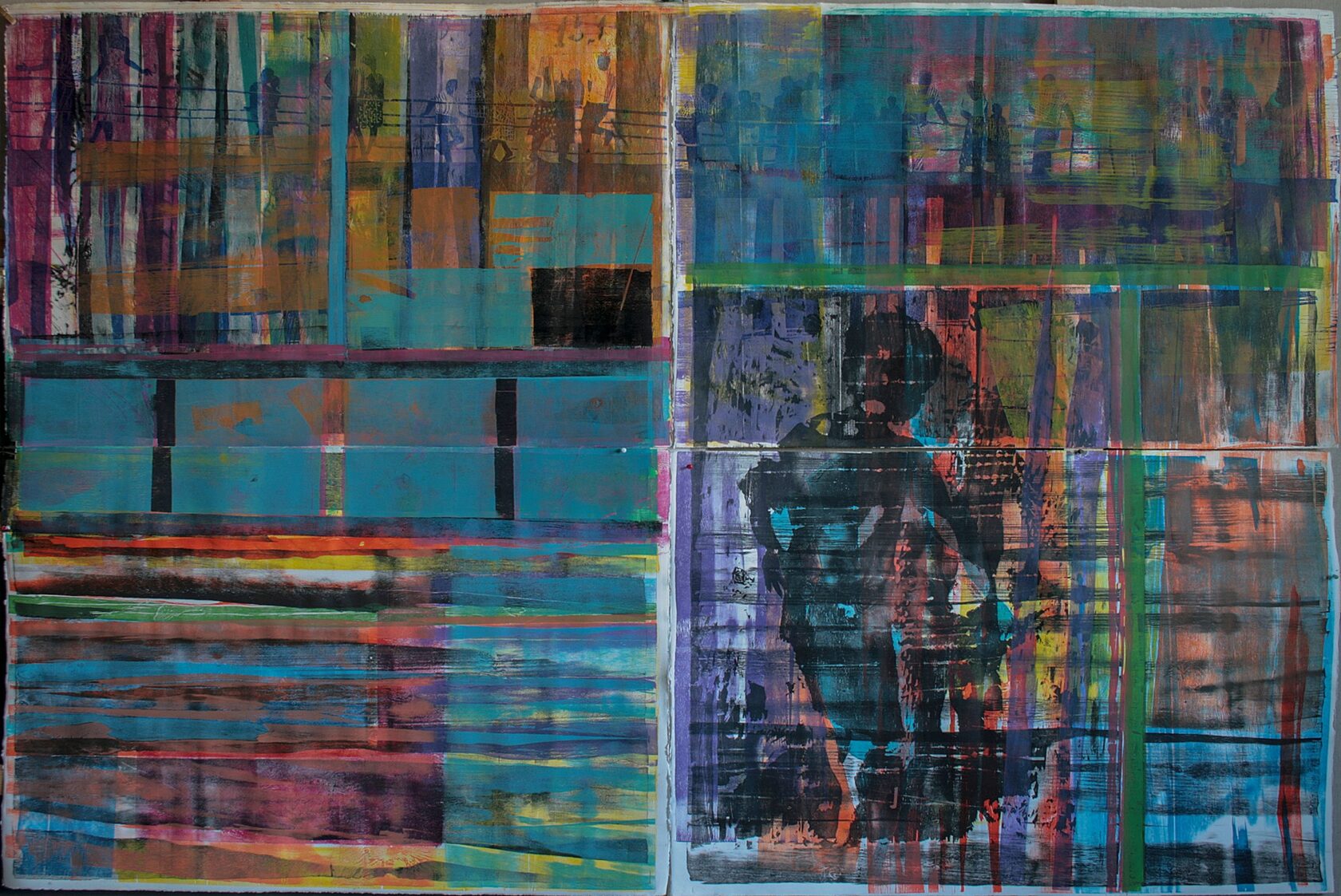 Мне было интересно, поэкспериментировать в серии из 14 работ, с ходами и движениями. Я пробовал свою краску на листе, как бы эскиз к печати тиража. Эти эскизы я выстроил в отельную серию, каждая в одном экземпляре. И закончил двумя композициями с небольшим тиражом.