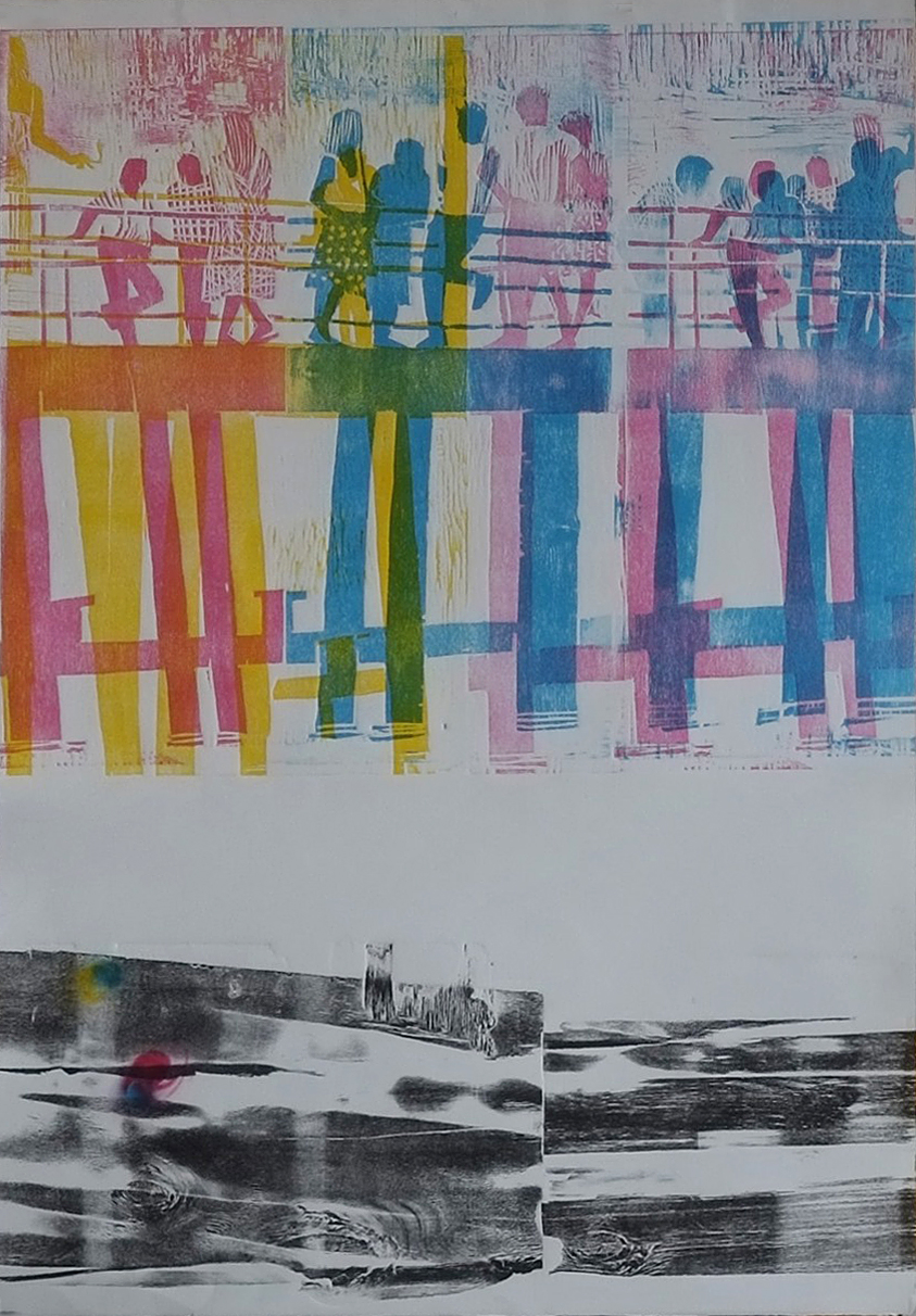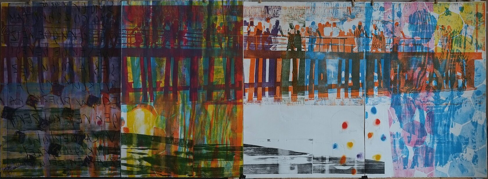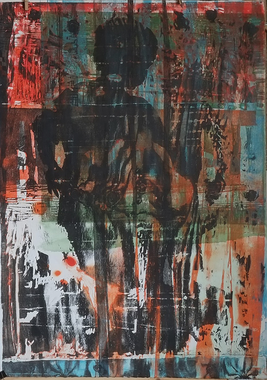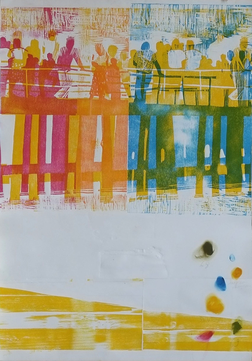 Мне было интересно, поэкспериментировать в серии из 14 работ, с ходами и движениями. Я пробовал свою краску на листе, как бы эскиз к печати тиража. Эти эскизы я выстроил в отельную серию, каждая в одном экземпляре. И закончил двумя композициями с небольшим тиражом.
