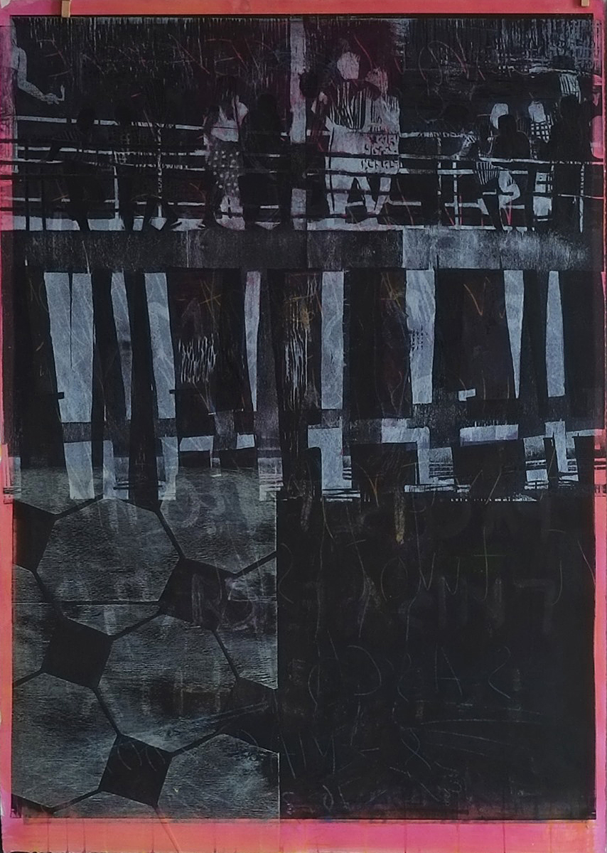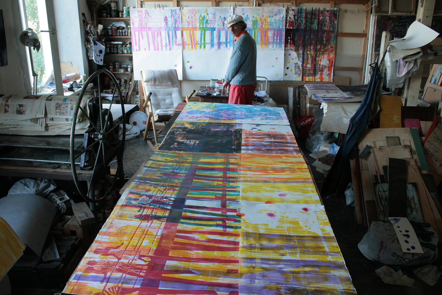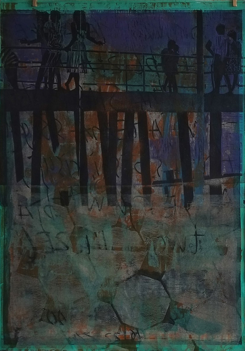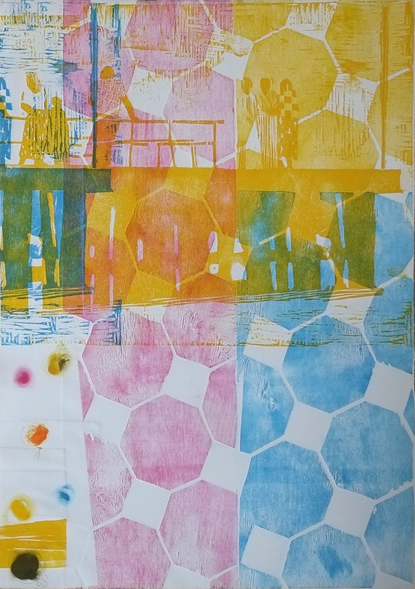 Мне было интересно, поэкспериментировать в серии из 14 работ, с ходами и движениями. Я пробовал свою краску на листе, как бы эскиз к печати тиража. Эти эскизы я выстроил в отельную серию, каждая в одном экземпляре. И закончил двумя композициями с небольшим тиражом.