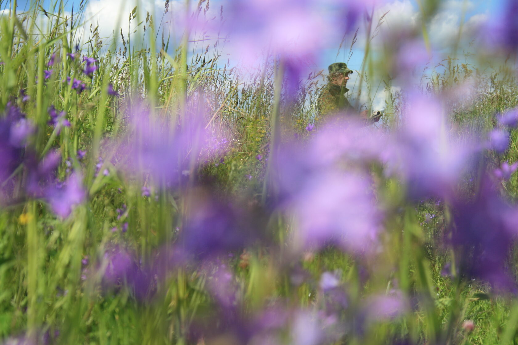 Когда ездил по дороге, это все быстро прекращалось, менялось на другой пейзаж. Но этой красоты, на протяжении получаса езды, до ж/д станции больше не было. Потом шли дома, земельные участки других полей, которые продаются и много борщевиков вдоль дороги - к которым, если внимательно приглядоваться, можно увидеть человеческие фигуры с руками и пальцами, которые машут и живут своей жизнью. Ближе к Чисмене пошли магазины, жилые избы и упираешься в железную дорогу. Проделывая этот маршрут, на протяжении нескольких лет, я подумал, что надо все-таки остановиться и посмотреть, ЧТО меня так притягивает в этом огромном поле с березами. Я набрался смелости, нашел время для этого и передо мной открылся совершенно новый мир с разнотравием выше пояса.