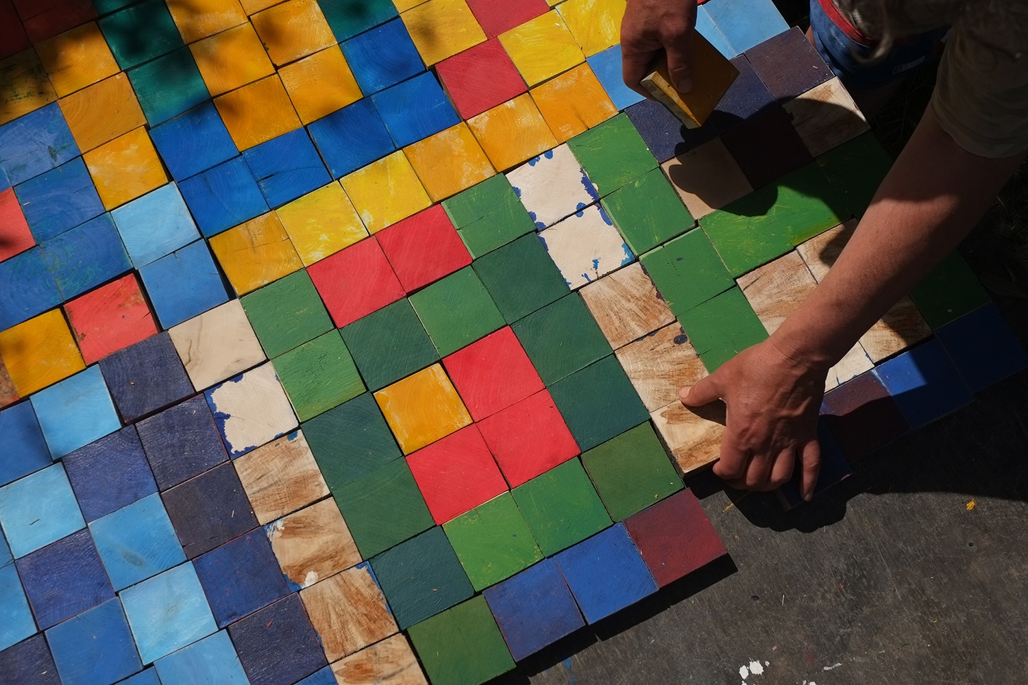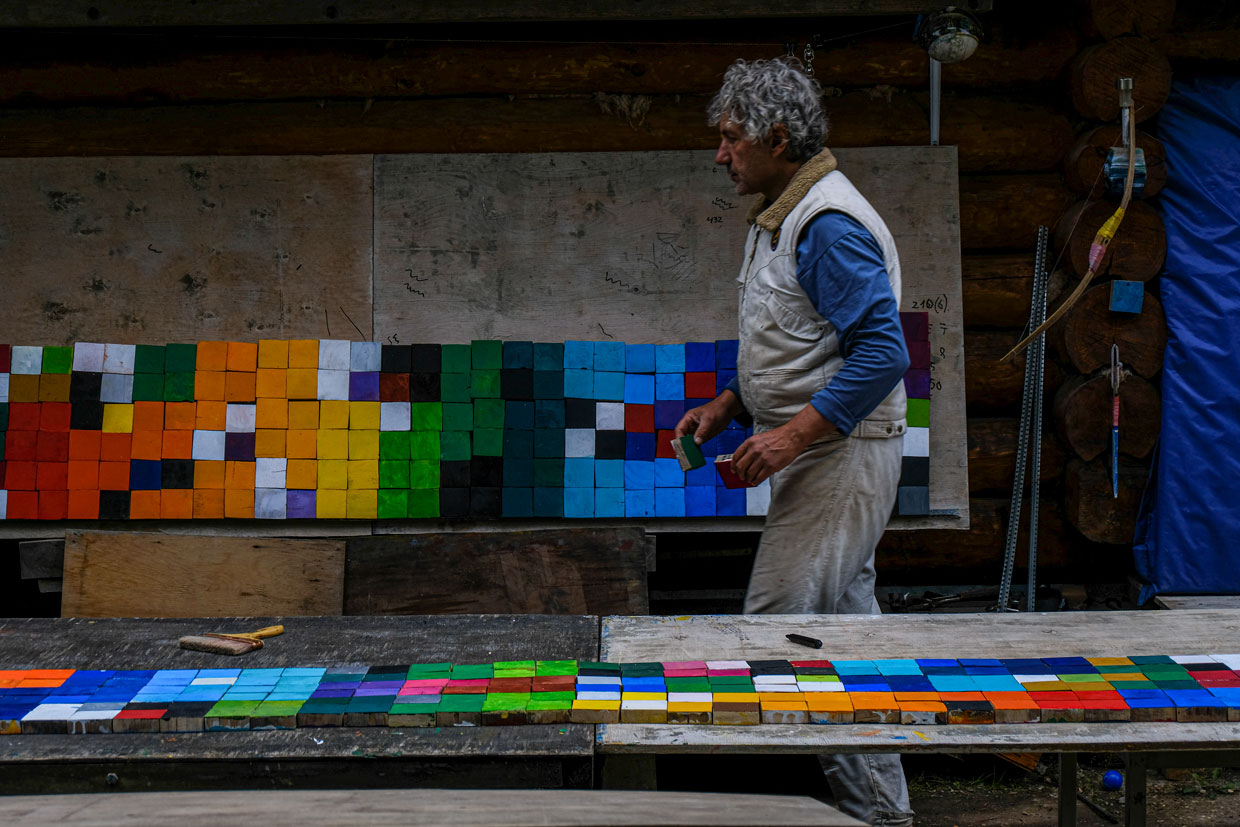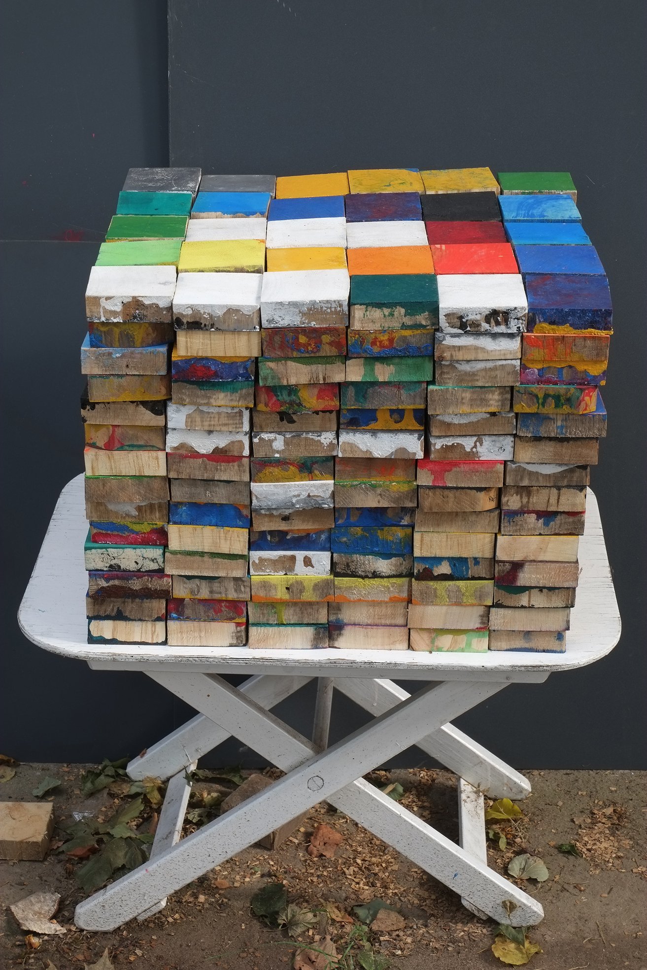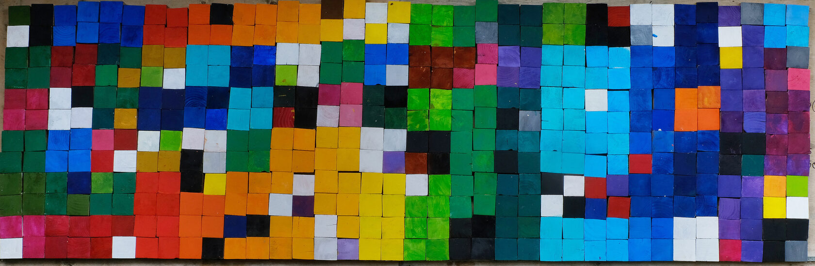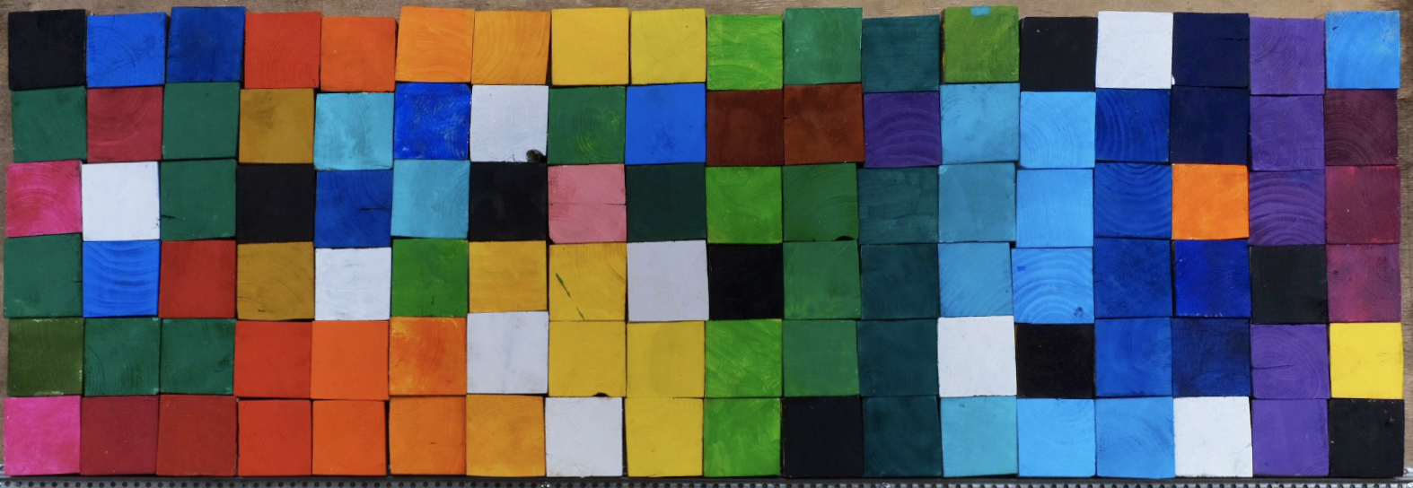 Первоначально у меня была идея "Книга художника по цветоведению" с обложкой. А на обложке появилась цифра 7. Позже было еще сделано 3 блока и отказавшись от первоначальной обложки с цифрой, появилось 10 блоков - 300 модулей 7 х 8 см. Девять из них для алфавита и один для цифр.